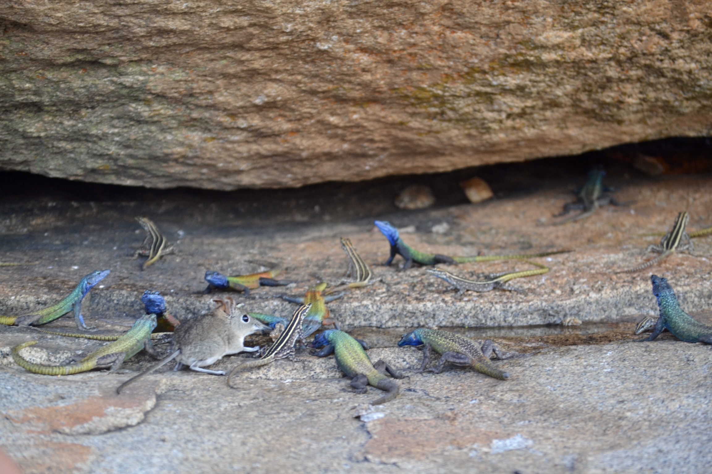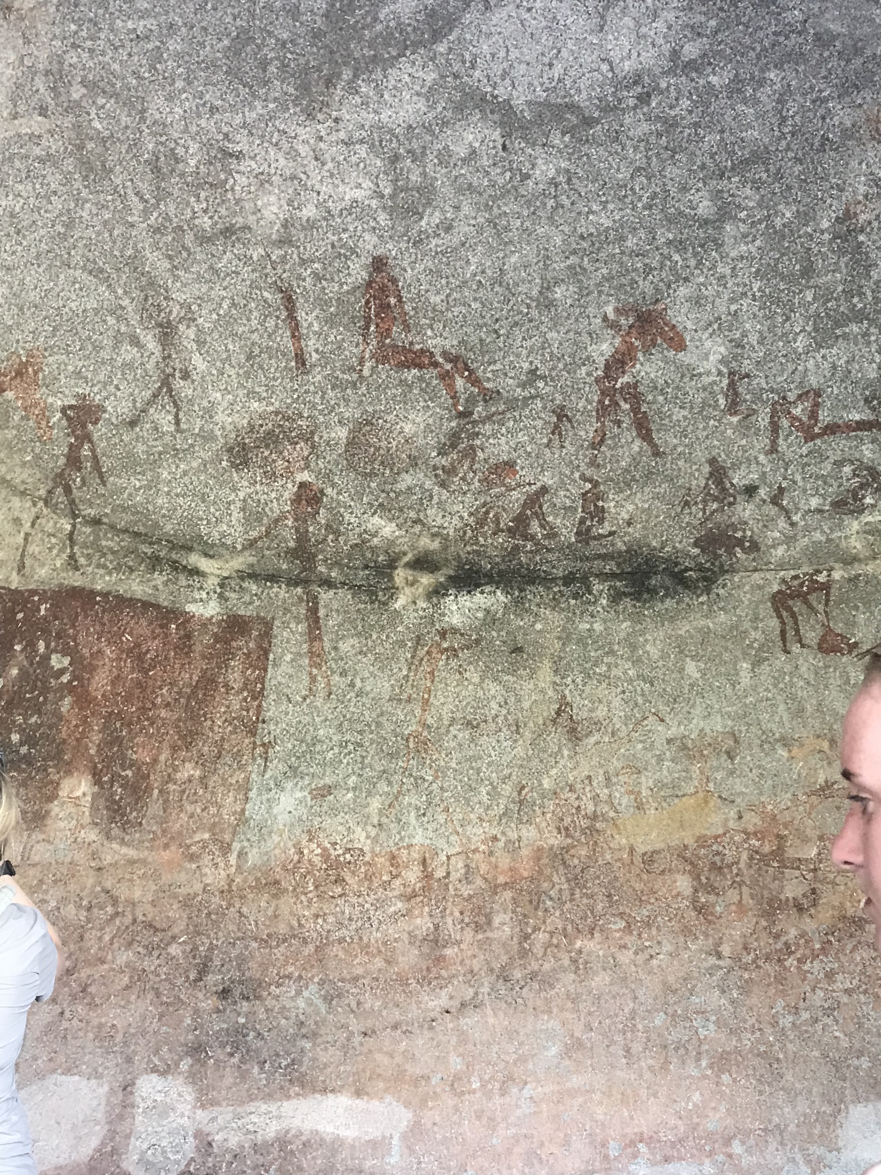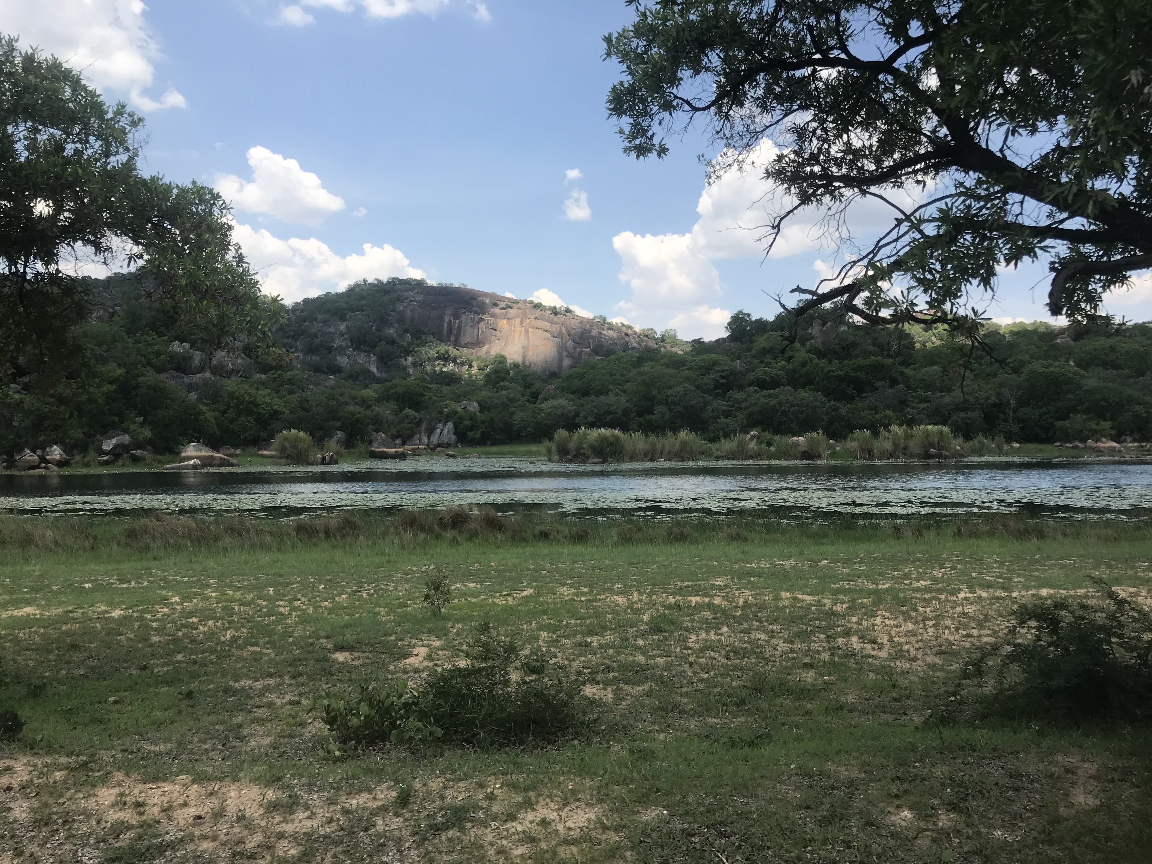 After we spent some time with the rhinos, we went to a dam for a picnic lunch. On our way, we stopped by a local shop to get some of the local beer. I tried it and I have never disliked a beer so much in my life. It was thick and looked like milk. It was the only dam in the park that doesn’t have crocodiles or hippos. Pictures don’t do the views justice. Once we finished lunch, we headed out on a hike to see cave paintings from the Bushmen. We climbed 4500 feet and again, the view was breathtaking. We got to the cave and spent some time looking at the beautiful paintings that could be as old as 100,000 years. Ian was incredibly knowledgeable about the Bushmen and their culture and lifestyle. He has had the privilege of meeting Bushmen but there are very few still alive. Our final stop of the day was the grave of Cecil Rhodes, an English business who was extremely influential in the history of Southern Africa. From there, we watched the sunset with rainbow lizards and elephant shrews around us.