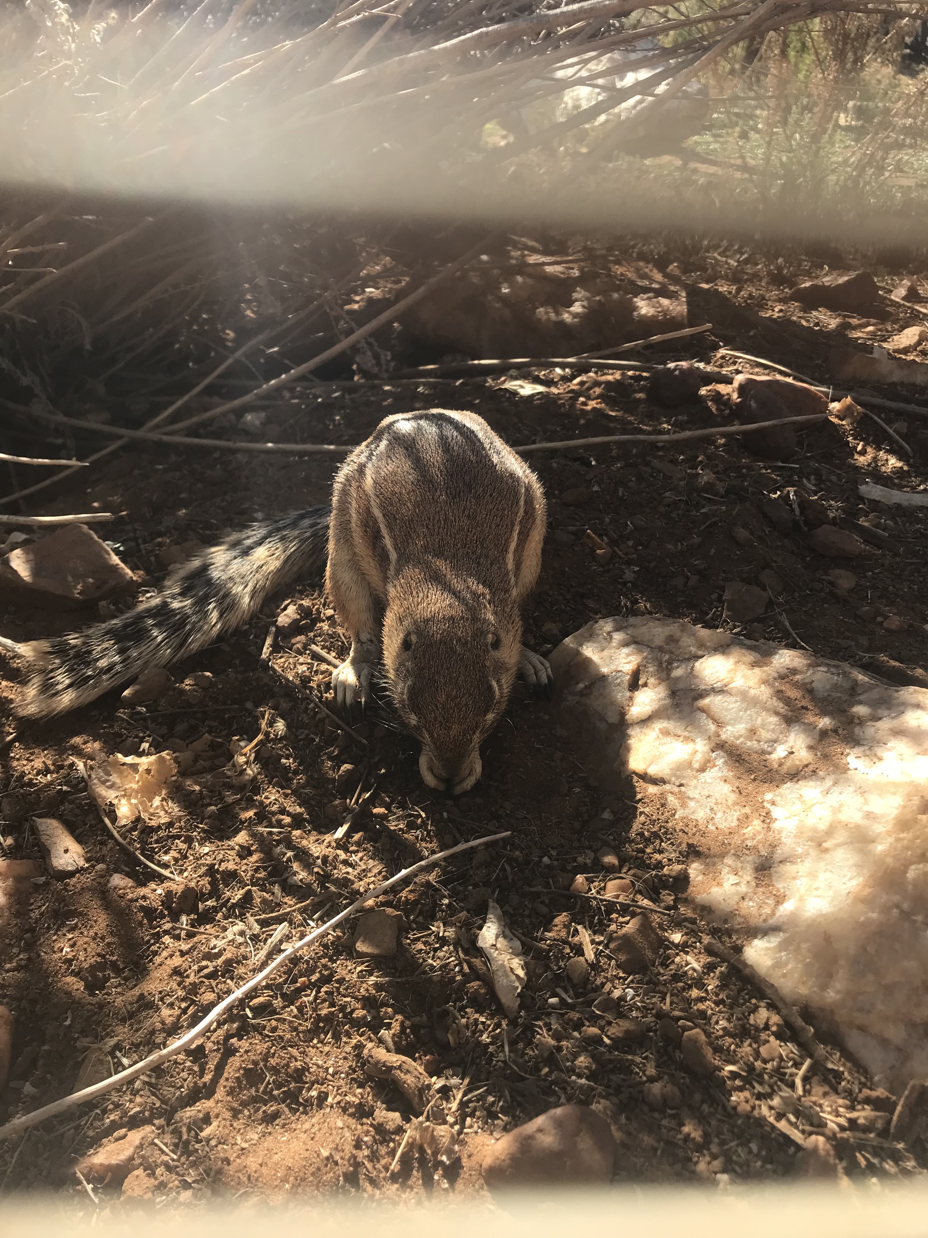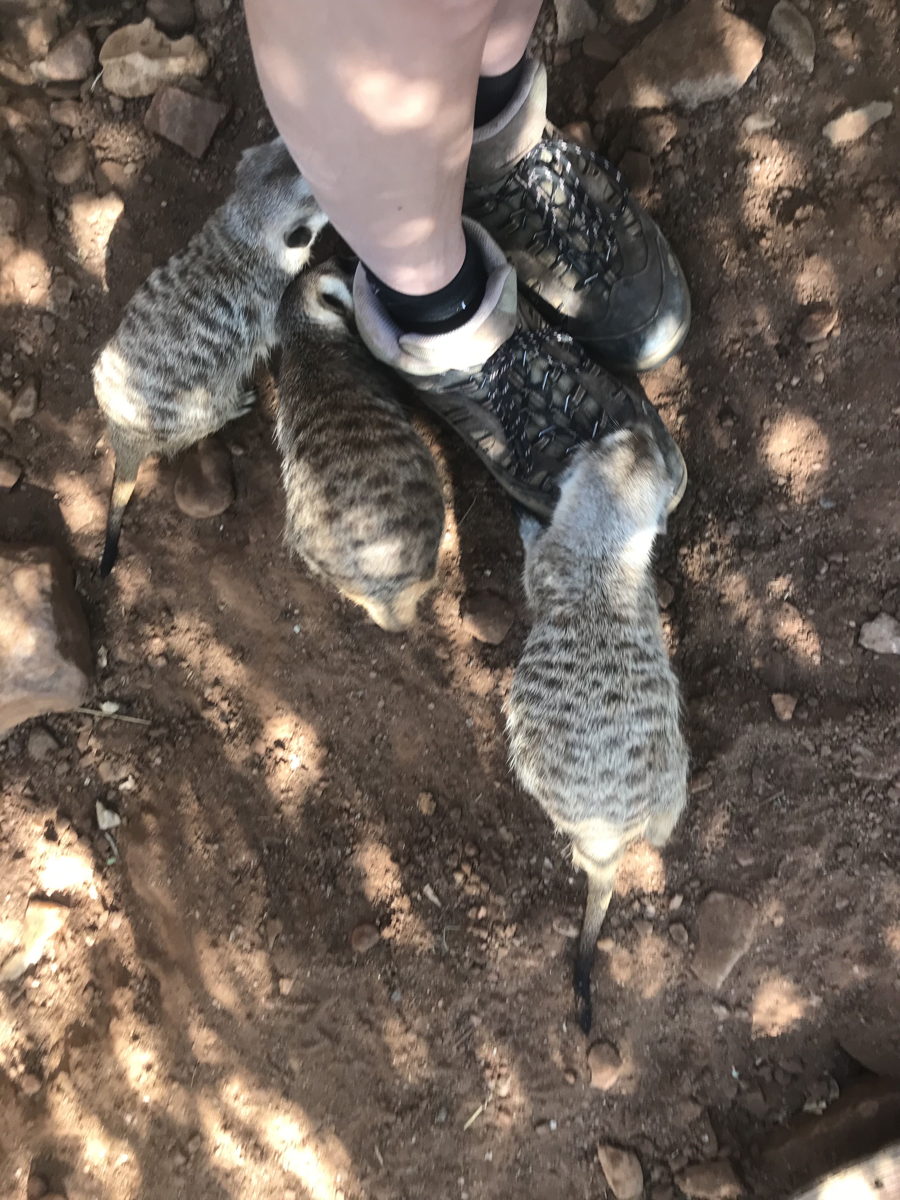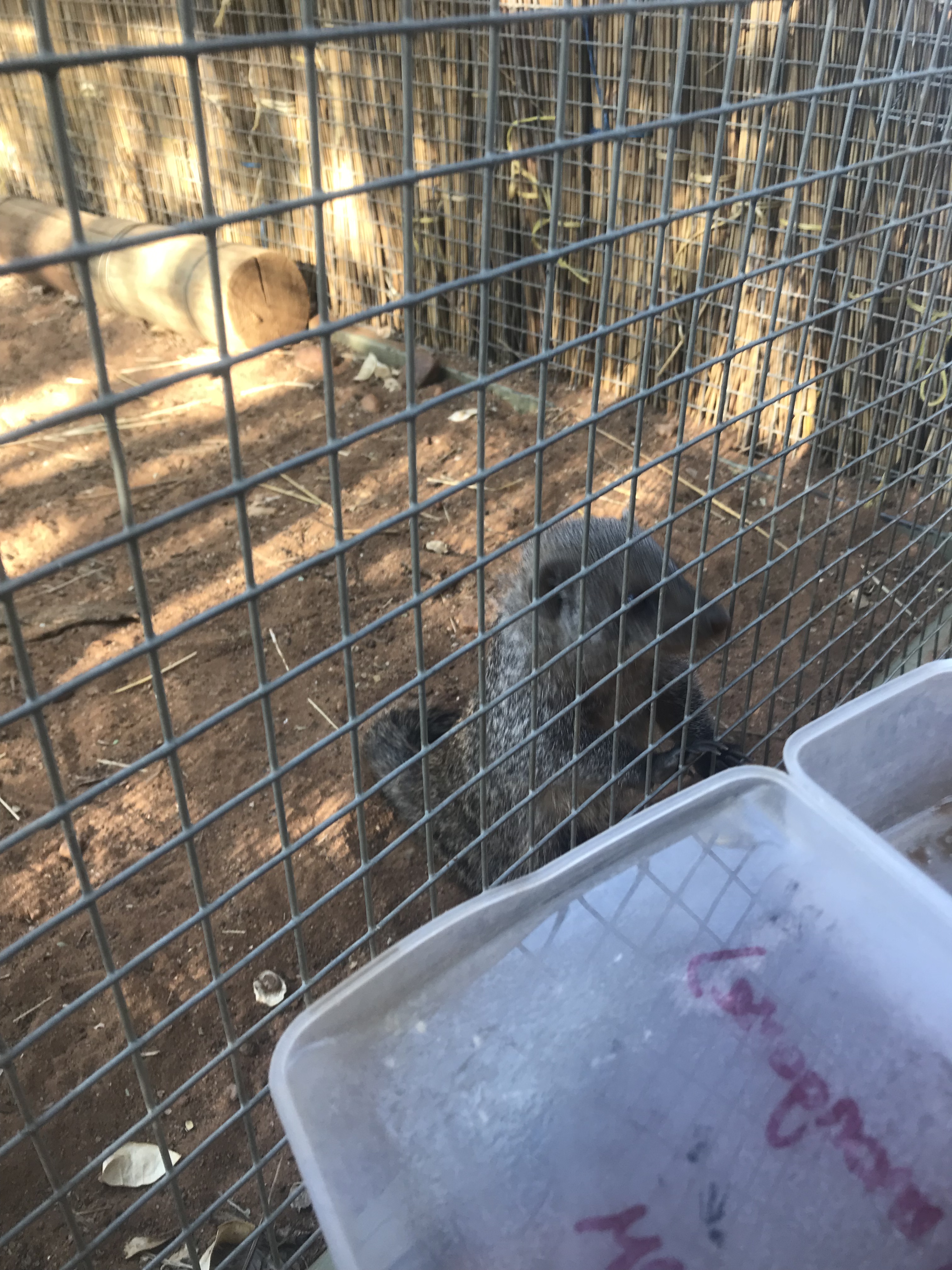 Wednesday morning my group was on enclosure cleaning and feeding. We were responsible for feeding the mongooses, meerkats, genets, African striped polecat, ground squirrels, rock hyraxes, vervet monkeys, tortoises, and a little orphaned lamb. Each species has its own diet that is prepared the day before and is specially catered to the species. For example, the rock hyraxes eat leaves and foliage so we go out into the bush and cut branches for them. The rock hyraxes also just recently had babies which are adorable! Interestingly enough, the closest relative to the rock hyrax (in the last photo) is the elephant! They have almost identical bone structure and digestive systems.