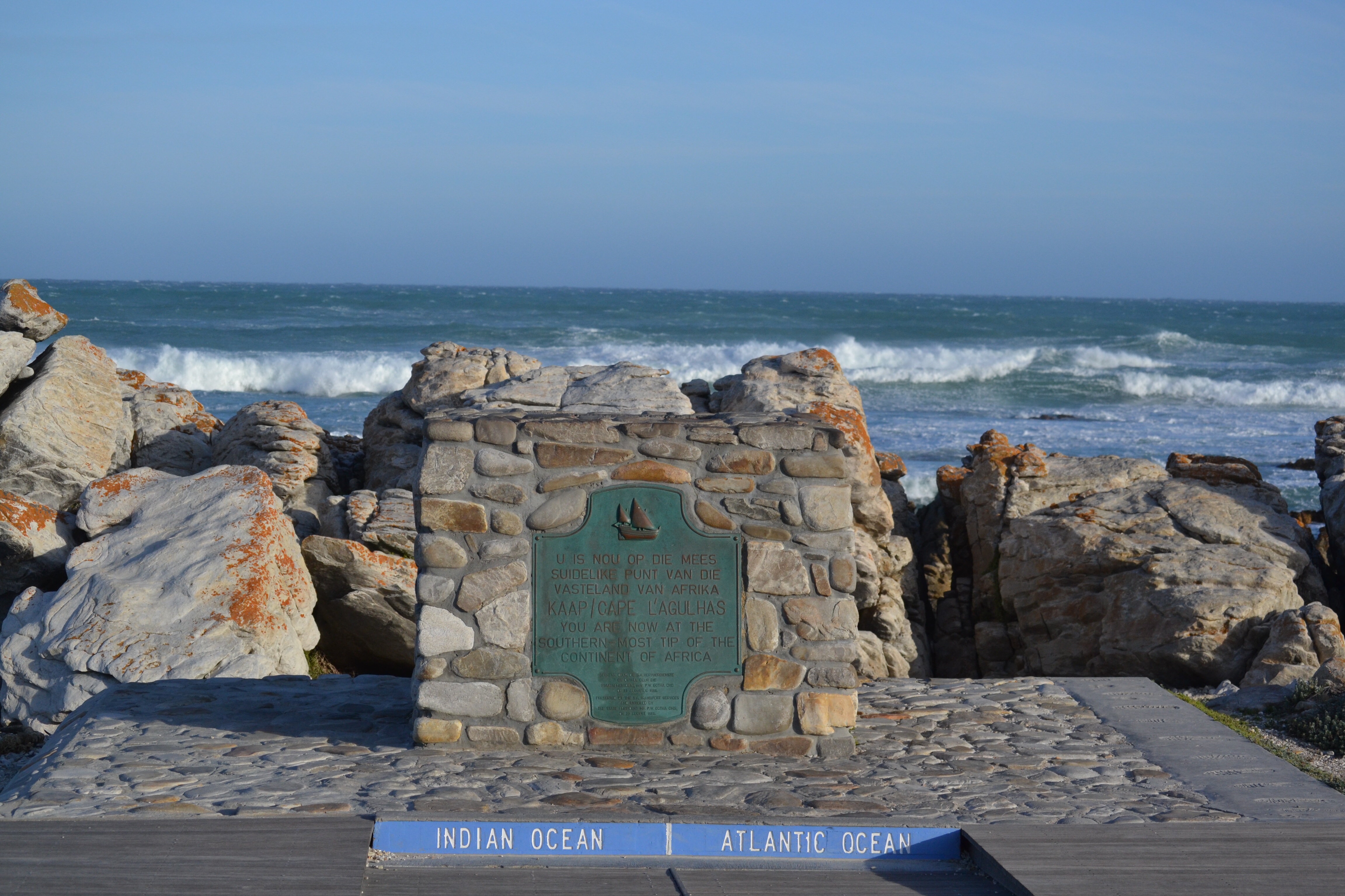 The weather was still not great which meant the ocean had huge waves so our excursions got canceled. Luckily, we were close to the Harbour so Tuesday morning we went down and tried to find a whale watching tour before we left. We were able to find one and go out the morning! We saw 3 Bryde’s whales, a fur seal, some penguins, and an albatross! Unfortunately, mom and Chase (along with half the boat) got sea sick but they were still able to see the animals. After our tour, we drove down to Cape Agulhas, the southernmost point of the African continent. It is also the point where the Atlantic Ocean and Indian Ocean meet. It was extremely windy by that point so we were happy not to be on a boat anymore!